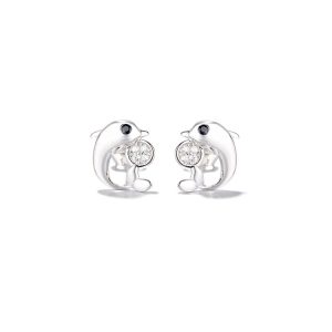 Kolczyki srebrne rodowane DELFIN Z CYRKONIAMI