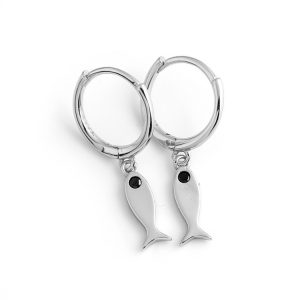 Kolczyki srebrne rodowane kółka z rybami