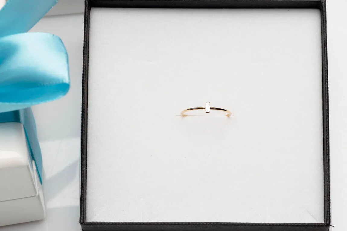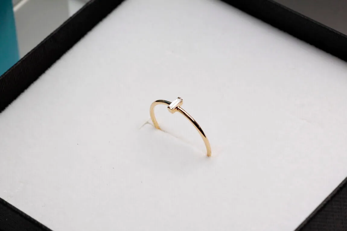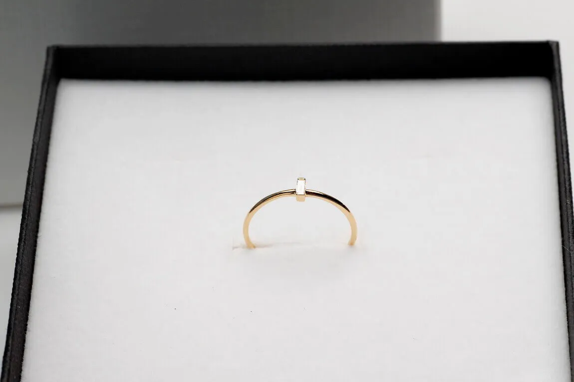 Wykoanany z żółtego zlota próby 0,585.Szerokość obrączki ok. 1.2 mm.